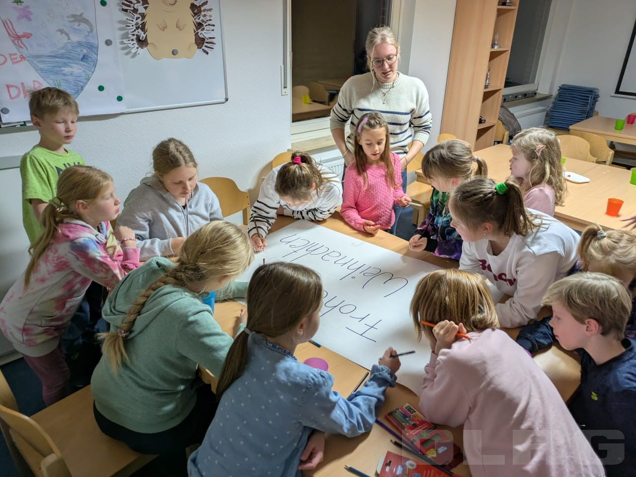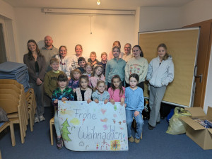 Zurück im Warmen wurde es wieder kreativ. Gemeinsam gestalteten wir ein großes Weihnachtsgruß-Plakat mit bunten Farben, Zeichnungen und lieben Wünschen. Dazu wurden immer wieder Weihnachtslieder angestimmt, die für eine richtig schöne, gemütliche Atmosphäre sorgten.