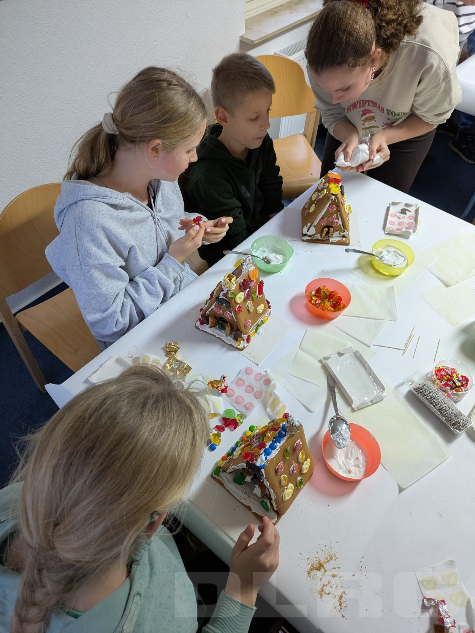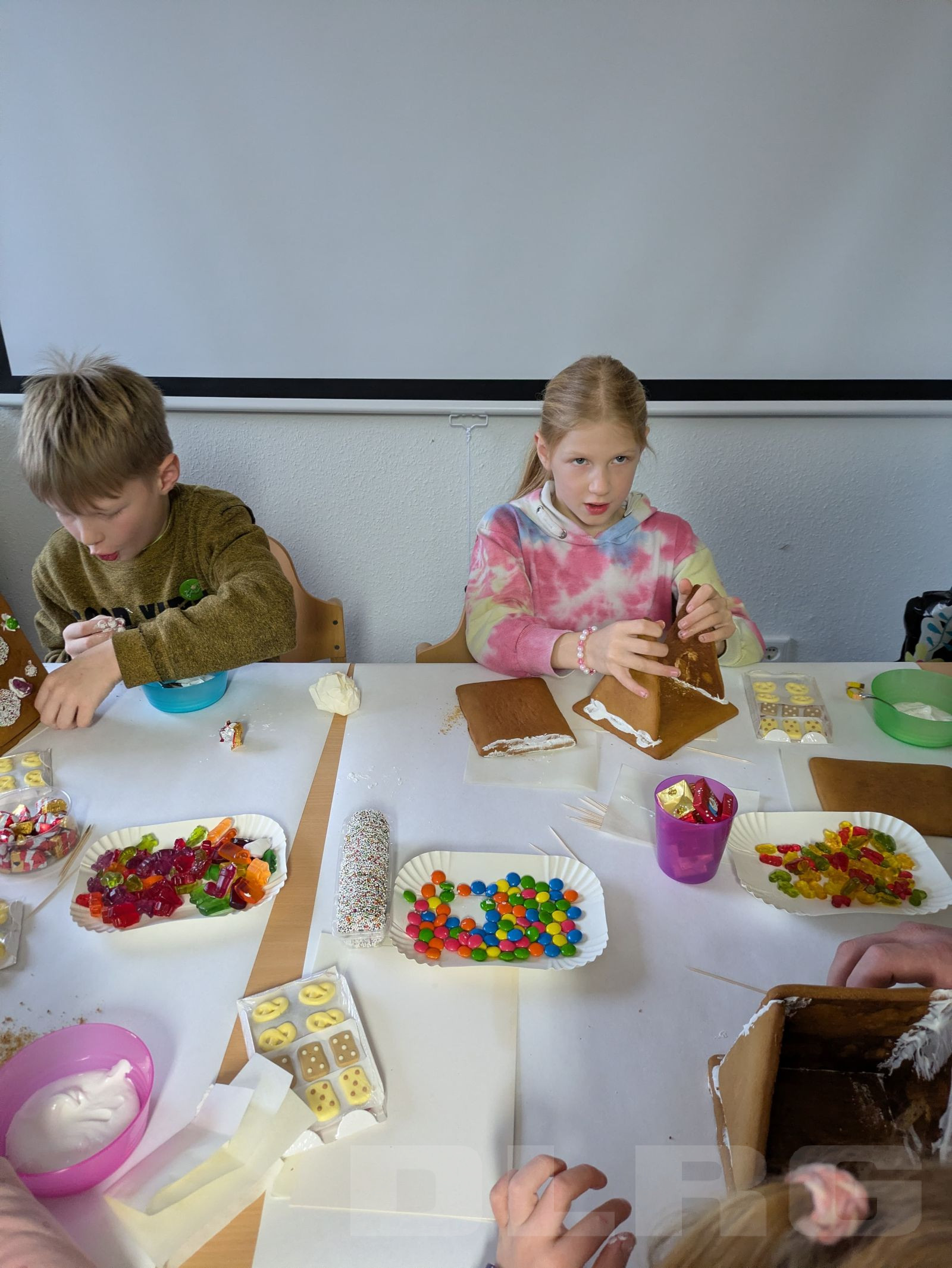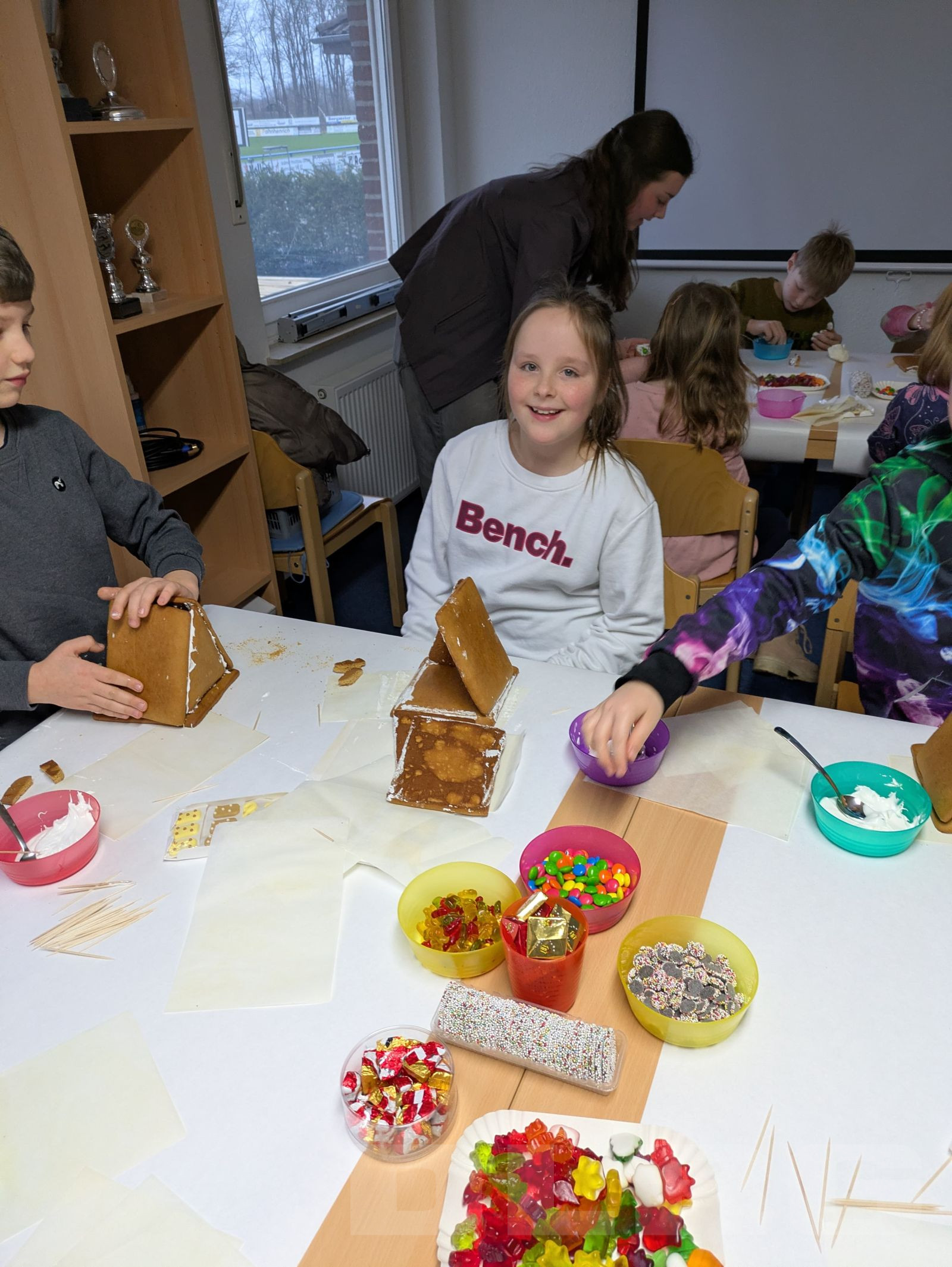 Zuerst stand das Lebkuchenhaus auf dem Programm. Gemeinsam wurde gebaut, verziert und natürlich auch ein bisschen genascht. Mit viel Fantasie, Teamarbeit und reichlich Zuckerguss entstanden nach und nach richtig schöne Häuser. Dabei ging es nicht um Perfektion, sondern um den Spaß am gemeinsamen Tun – und den hatten alle.