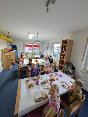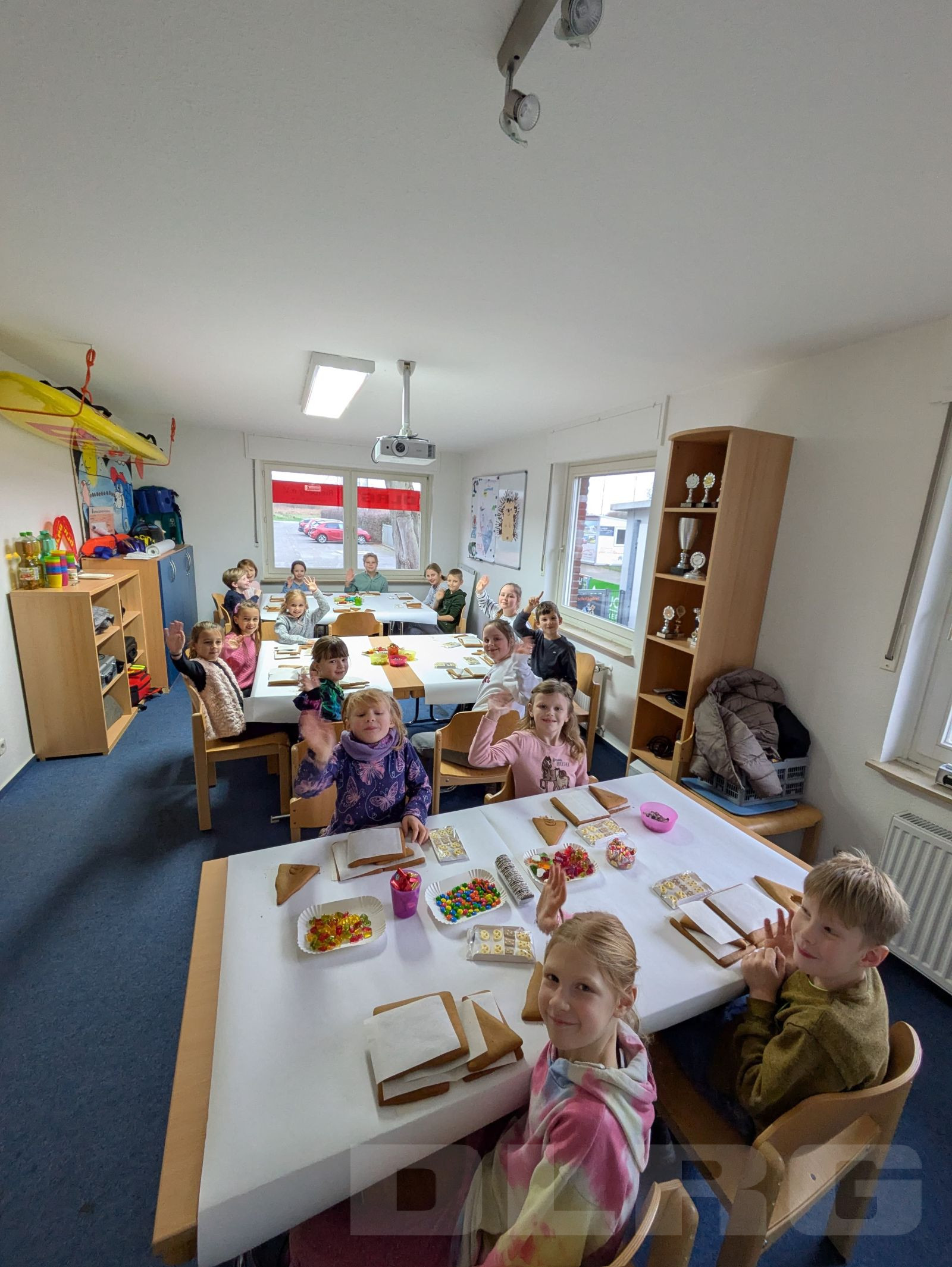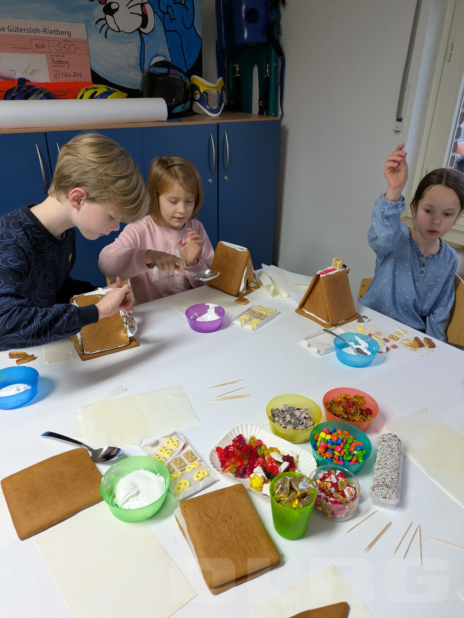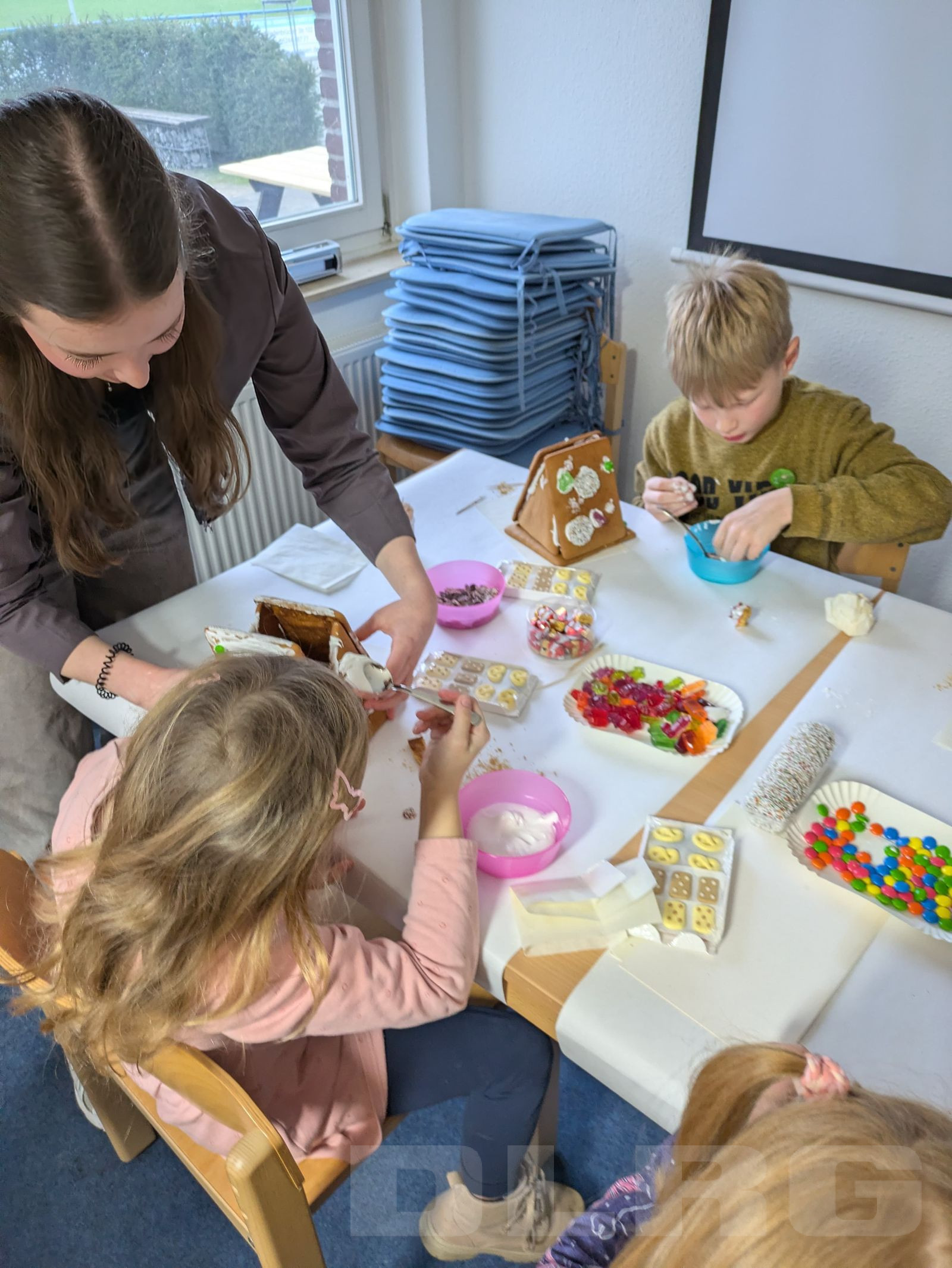 Zuerst stand das Lebkuchenhaus auf dem Programm. Gemeinsam wurde gebaut, verziert und natürlich auch ein bisschen genascht. Mit viel Fantasie, Teamarbeit und reichlich Zuckerguss entstanden nach und nach richtig schöne Häuser. Dabei ging es nicht um Perfektion, sondern um den Spaß am gemeinsamen Tun – und den hatten alle.